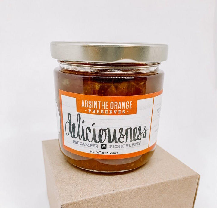 Absinthe Orange is a new take on the traditional Orange Marmalade. A mix of fresh organic oranges & lemons, fresh anise, sustainably ethically raised Madagascar vanilla, and Absinthe Verte.